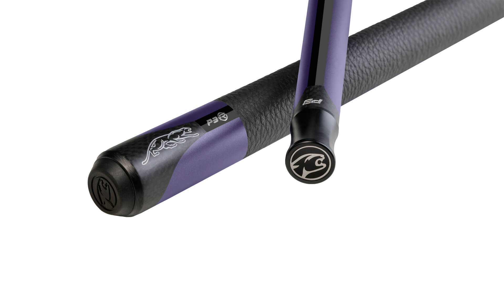 The cue showcases a striking matte purple finish complemented by a sleek gloss black stripe, embodying elegance and power. The carbon fiber collar and butt cap enhance its modern look, while the engraved Predator cat and P3 logo, along with a unique serial number, add exclusivity. The Uni-Loc® Leather Luxe™ Wrap provides an unmatched grip, ensuring comfort and control during the most intense matches.