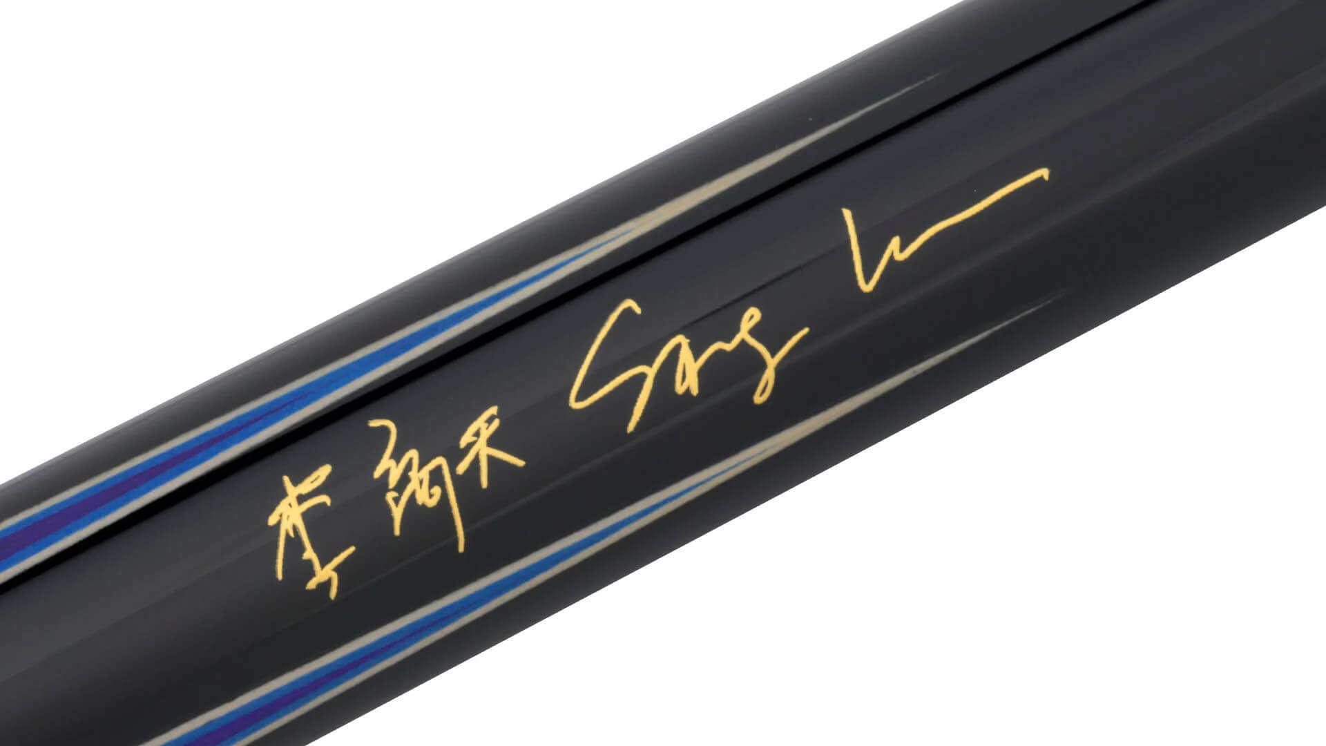 Each cue features an artful arrangement of 8 hand-laid spliced points—4 long, 4 butterfly—in a captivating blend of blue, maple, purple, ivorine, and ebony, set into a sleek black-painted maple forearm and butt sleeve. The gold foil Sang Lee signature seals each cue with authenticity and honor. It’s a limited edition masterpiece in every sense.