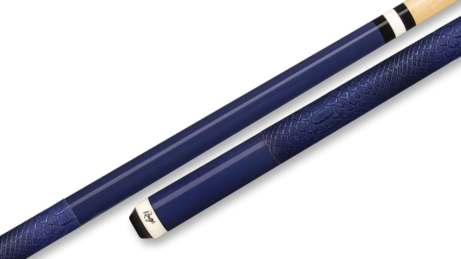 This Rage pool stick is manufactured from glossy hard rock maple with a Blue-finish and imitation snakeskin wrap. This weight-adjustable Blue pool cue by Rage also has a 13 mm Standard Leather Tip, a 5/16×18 joint, and a 12.75mm Maple shaft.