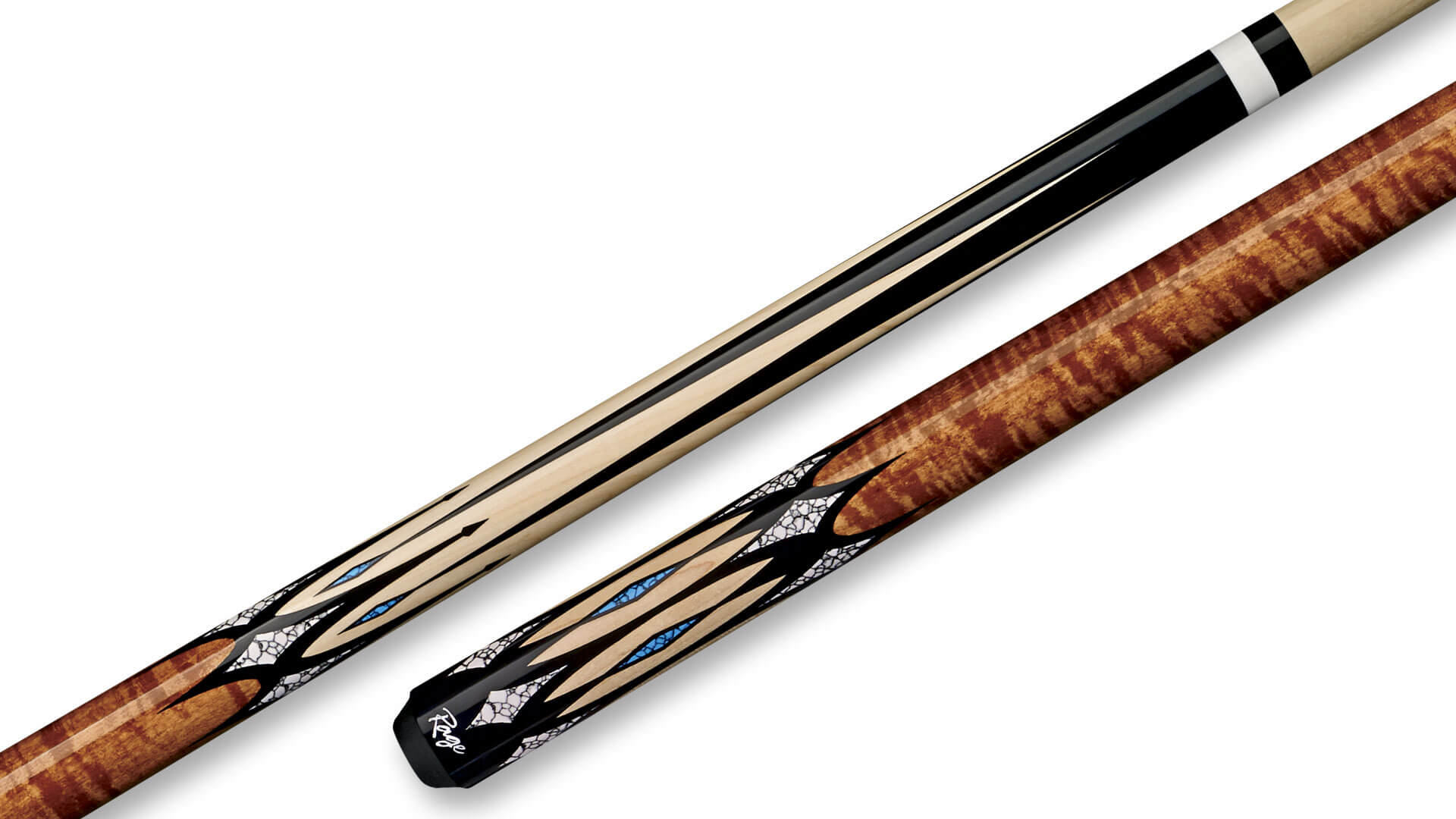 Natural-finish Rage pool cue stick with Turquoise and White Turquoise Inlay Graphics is manufactured from glossy Maple wood. This wrapless Rage pool stick with natural stain also has a 13mm Leather Tip, 5/16×18 joint, and a 12.75mm Maple shaft.