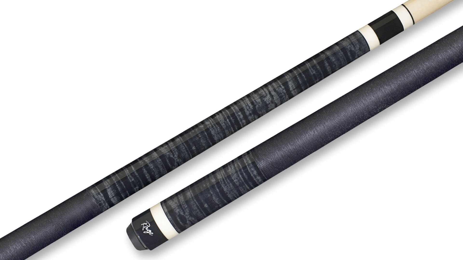 This Rage pool stick has a Grey finish with tiger-stripe transfer on Glossy Maple wood, with a black nylon wrap. This Grey-colored Rage pool cue has a 12.75mm Maple shaft, Standard Leather Tip, and a 5/16×18 joint.