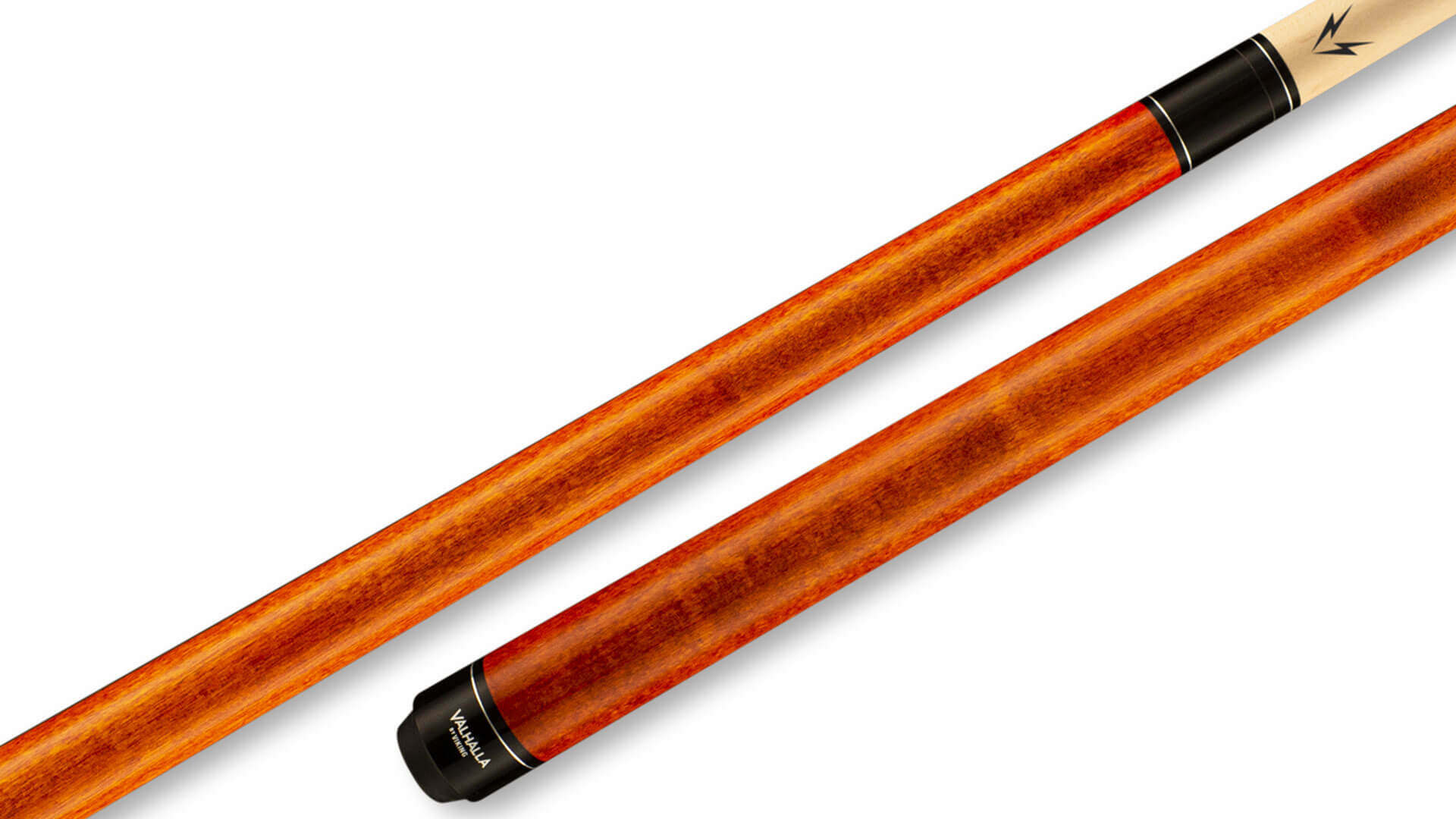 Orange pool stick from Valhalla is made from glossy Maple wood with an orange stain and it features a wrapless handle and Nickel Silver rings. This weight-adjustable pool cue by Valhalla also includes a wood shaft with a standard leather tip, a 5/16 x 18 joint, and a Valhalla limited lifetime warranty.