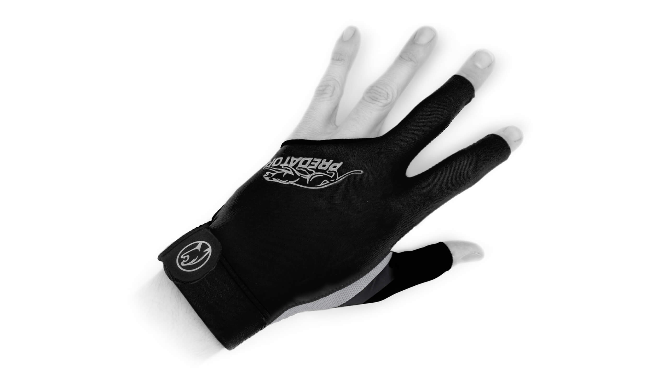 Black billiard glove from Predator features breathable mesh, with grey accents, a low friction ”Second-Skin” surface, a non-slip thumb heel pad, and an elastic-velcro closure. Left-handed Predator pool glove is available in multiple sizes, ranging from Extra Small, to Extra, Extra Large.