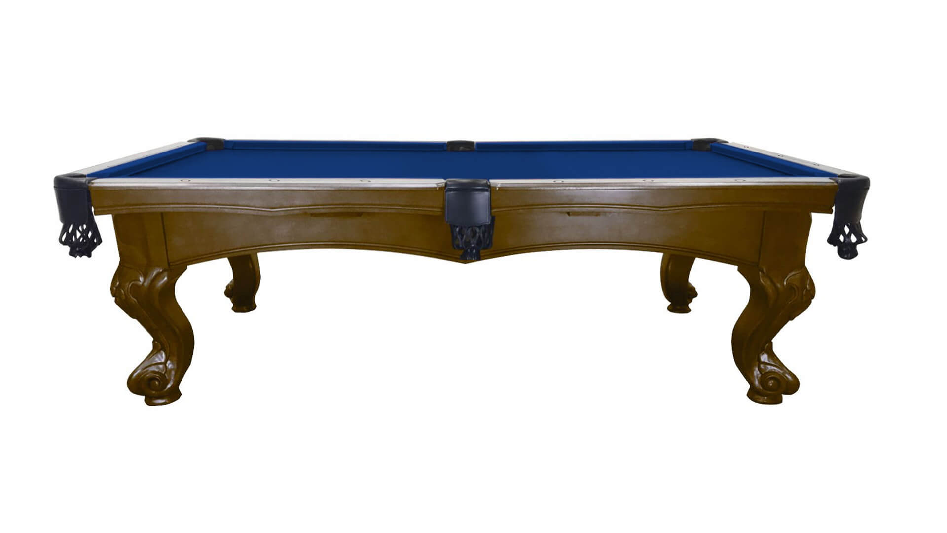 Plank and Hide Classic pool table for sale, the “El Dorado”, is constructed using Black Walnut and Poplar woods, with a Briarsmoke finish. This 3 piece slate pool table from Plank and Hide features detailed Queen Anne legs, and Black leather drop pockets, with a Vintage, Classic pool table style, plus it can be installed with your choice of 20 pool table felt colors, and this Plank and Hide pool table for sale is available in an 8ft pool table size, which is a “standard pool table size”.