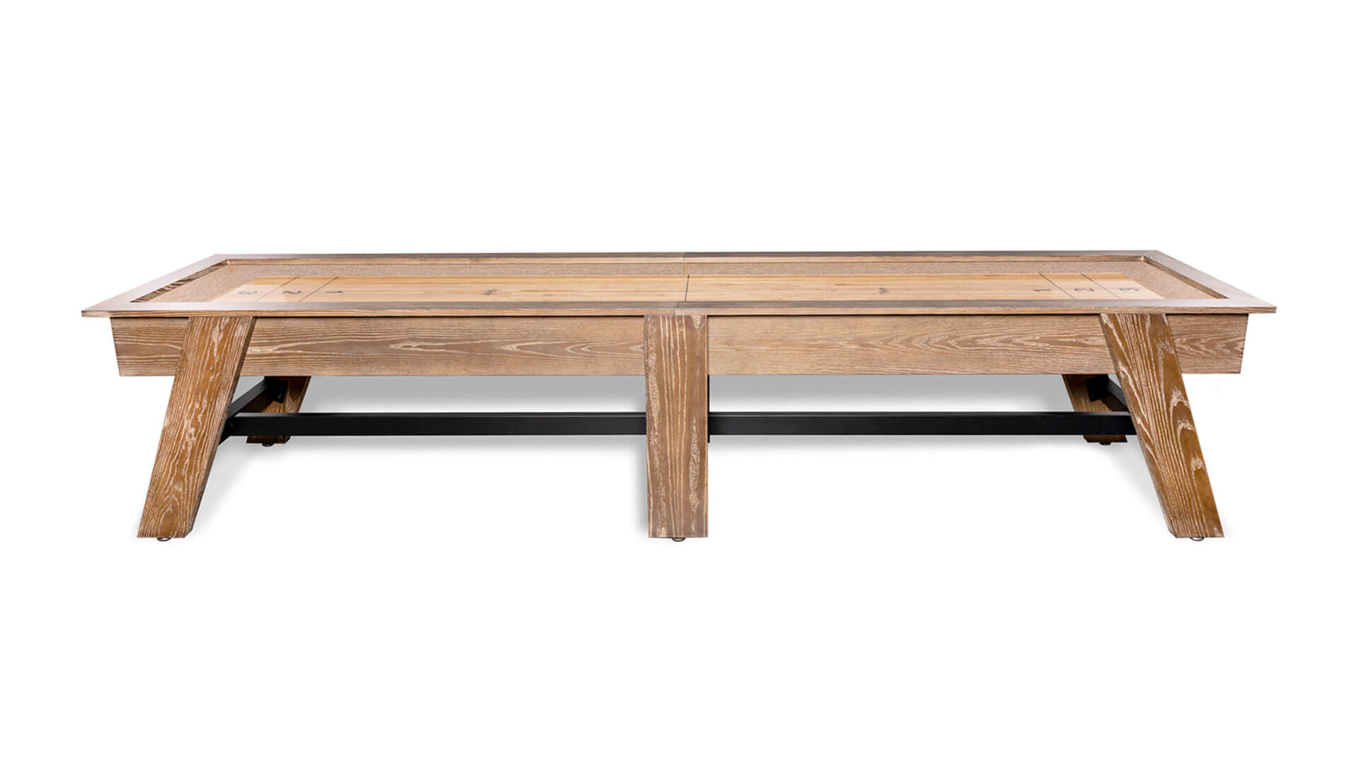 - Solid-Wood Shuffleboard Table with Brushed Walnut Finish